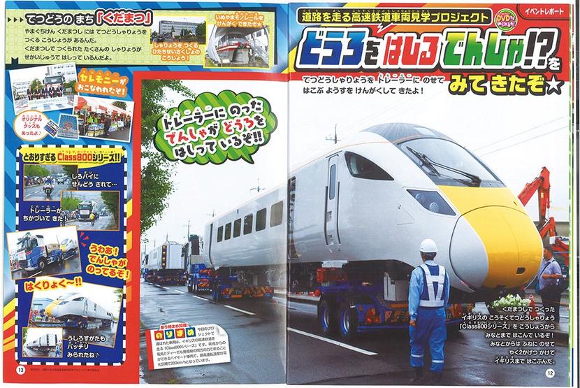地域下松市下松市で7月14日に開かれて約3万5千人の見物客が押しかけた「道路を走る高速鉄道見学プロジェクト」の様子が、学研プラス発行の幼児雑誌「最強のりものヒーローズ」11・12月号に掲載されて、全国的な話題になっている。