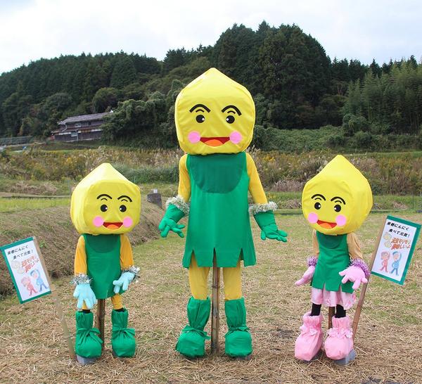 下松市来巻の市農業公園の第6回かかしコンテストの最優秀賞に来巻むつみ会(宮田静子代表)が出した「ガーリック3兄弟」が選ばれた。応募作品11点は17日(日)の同...