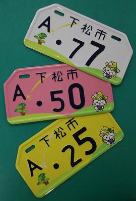 松や流れ星、くだまる描いて 原付ご当地プレート
