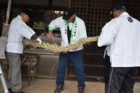 富田護国神社にしめ縄奉納 境内清掃の奉仕活動も