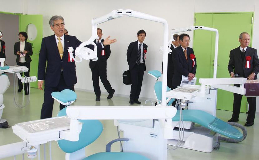 式典に続いて一般向けの内覧会が開かれ、高校生や保護者らが訪れて、実際の歯科診療所で使うものと同じ機材がそろった実習室など設備の整った校内を見学していた。入学の問い合わせは同校開設準備室(082-264-7000)へ。