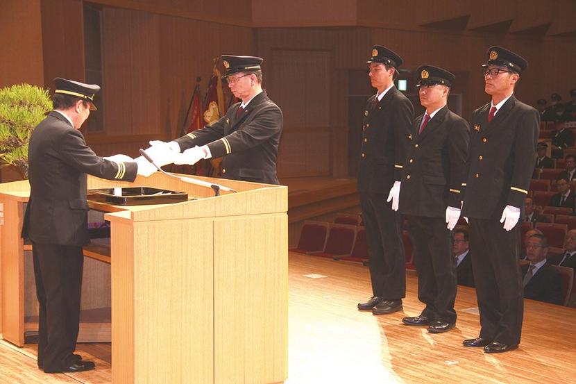 下松市の消防出初め式は5日、スターピアくだまつ大ホールと下松タウンセンター中央広場で開かれ、館内の式典や同広場での観閲式やアトラクション、一斉放水、餅まきに約...