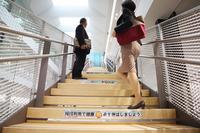 「上がりきればすっきり美脚」 市役所階段にステッカー