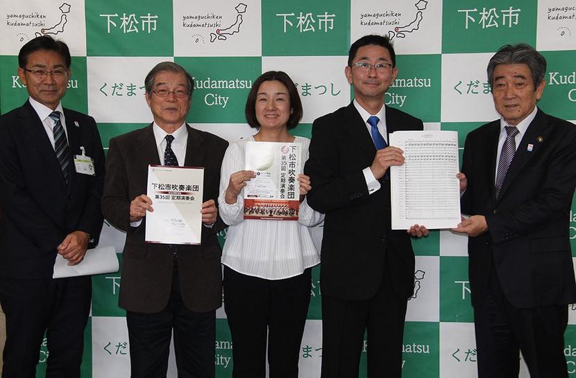 下松市吹奏楽団(山野井一也団長、53人)の創立40周年記念楽曲「ランドスケープス〜松が見てきたもの」が完成し、2月27日に市役所で国井市長、玉川良雄教育長に報...