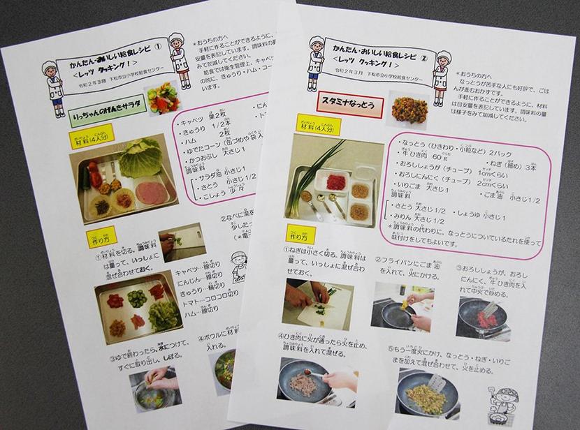 下松市葉山の市小学校給食センター(池田千帆所長)は、新型コロナウイルスの感染拡大防止対策で休校中の児童の昼食の参考にしてほしいと、代表的な献立2点のレシピを「...