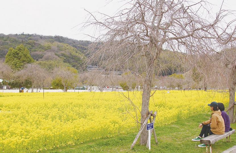 下松市河内の下松スポーツ公園の花の広場で、約7万5千本の菜の花が見ごろを迎えた。鮮やかな黄色の花のじゅうたんの中を、新型コロナウイルスの感染症拡大防止のため休...