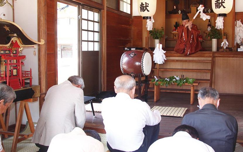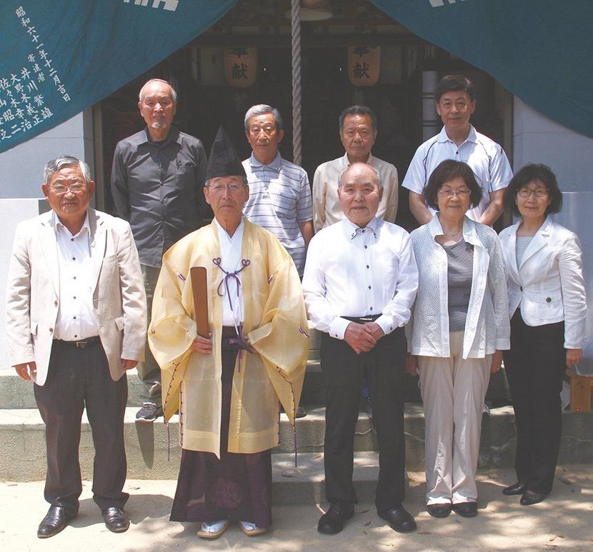 神足宮司(左から2人目)、山内会長(その右)ら神事に参加した人たち
