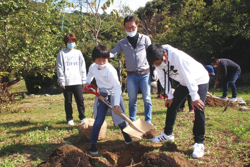 この日に植樹した河津桜は、来年春から花が咲き始める。両親や兄と河津桜を植樹した東陽小3年の兼子桃華さん(8)は「どんな花が咲くのか楽しみ。咲いたら見に来たい」と話していた。