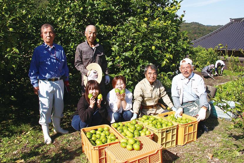 下松市の笠戸島特産品開発グループ(守田秀昭代表、38人)が島内で栽培しているレモンの収穫作業が10月30日から始まった。この日は深浦で皮が黄色くなる前の青いレ...