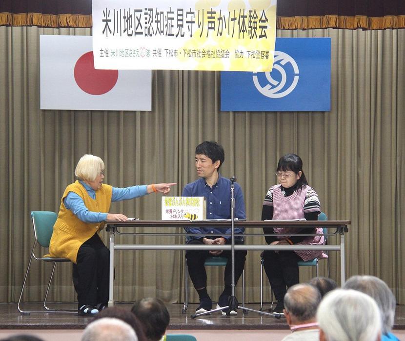 下松市が公民館区単位で毎年持ち回りで開いている「認知症見守り声かけ体験会」が7日、米川公民館で開かれ、認知症の正しい理解や見守り、声かけの方法を地区住民約50...
