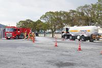 タンクローリー横転を想定 高圧ガス火災の消火訓練 20社から120人参加