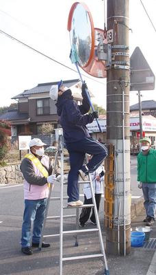 下松市花岡公民館区青少年健全育成連絡協議会(三池孝道会長)は19日、花岡小の校区内の主な通学路にある約60基のカーブミラーを清掃した。同協議会の役員35人と、...