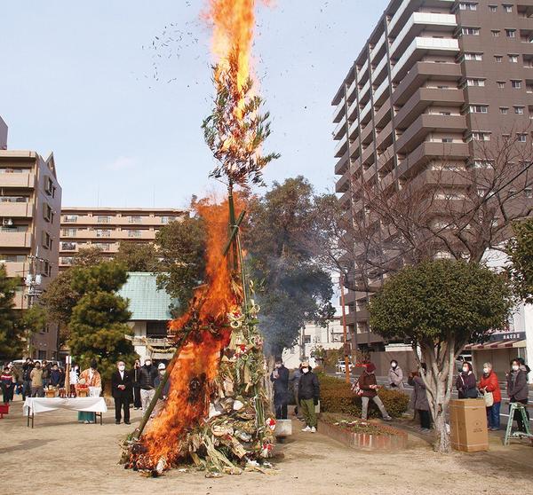 コロナ禍でも無病息災祈って 金輪神社どんど焼き