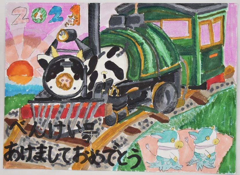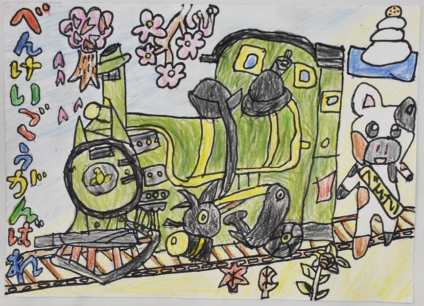 下松市のNPO法人下松べんけい号を愛する会の「第9回114歳おめでとう べんけい号への年賀状コンクール」の作品展が4日(木)までほしらんどくだまつのロビー、4...