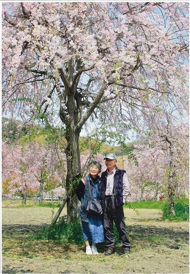 優秀賞の田村さんの「しだれ桜と一緒にパチリ!!」