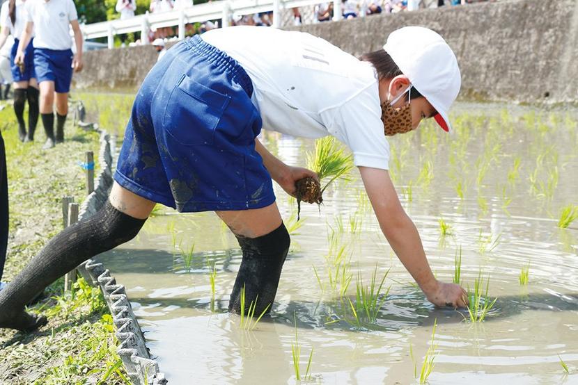 苗を植える児童