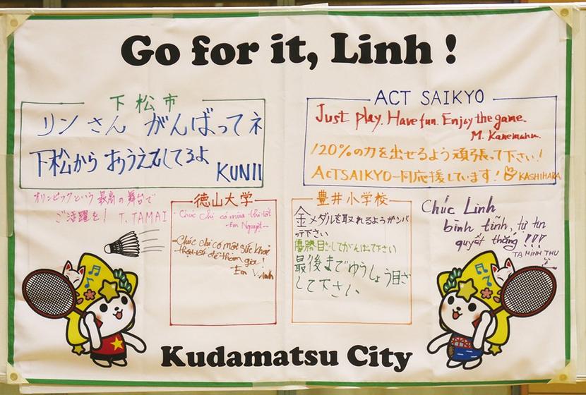 地域下松市下松市は28日、東京五輪女子バドミントン競技に出場が決まったベトナムのグエン・トゥイ・リン選手(23)にエールを贈る寄せ書きの応援旗を作った。応援旗は出場前の来日時に東京の選手村のリン選手に郵送する。