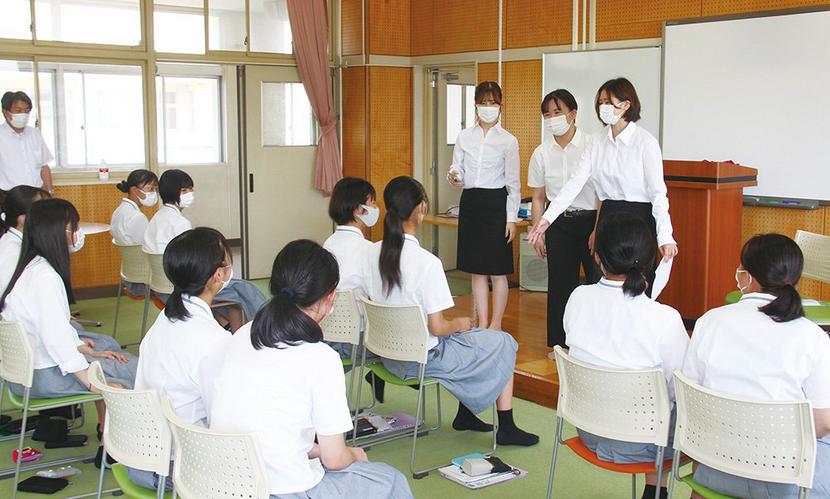 山口市の県立大と教育連携協定を結ぶ下松市の華陵高(山田芳彦校長、342人)で14日、華陵高卒業生2人を含む同大学の学生9人による英語の研究授業が開かれ、英語科...