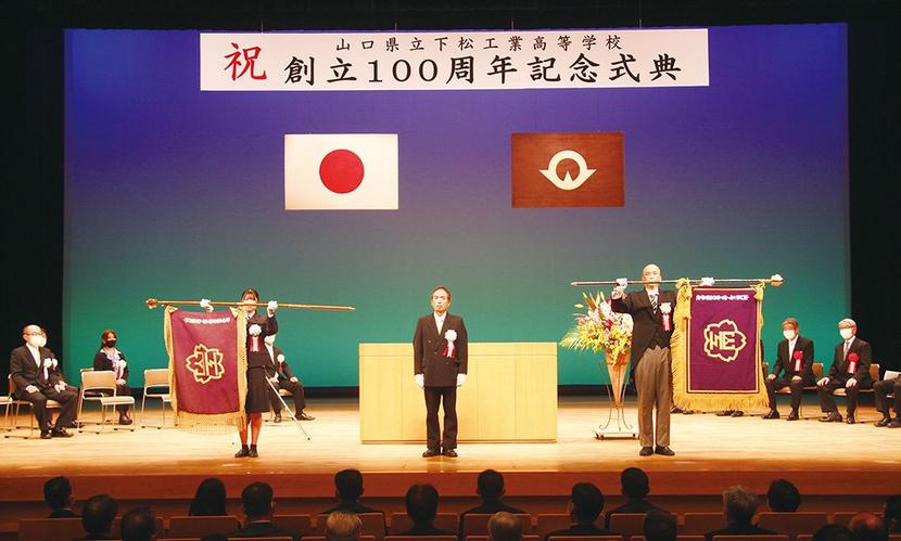 1921年に県内初の県立工業学校として開校した下松市の下松工高(松本理校長)の創立100周年記念式典が2日、スターピアくだまつ大ホールで開かれ、生徒や教員、来...