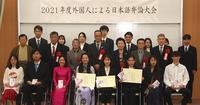 グランプリはベトナムのクインさん(ビークルーエッセ) 外国人による日本語弁論大会に8人 留学生や技能実習生が流ちょうに