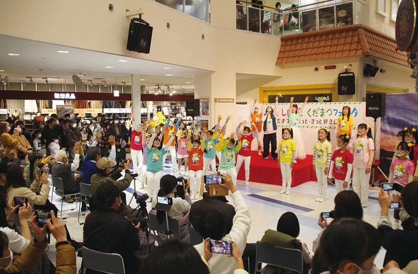 初披露に参加した子どもたち=山口県下松市のゆめタウン下松にて