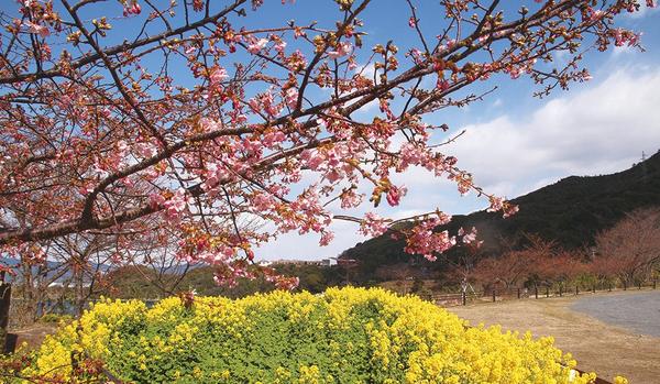 山口県下松市笠戸島の県道沿いの県有地“潮風ガーデン”で河津桜の並木が咲き始めた。花壇の菜の花もきれいに開花し、黄色とピンクのコラボレーションが島を訪れる人たち...