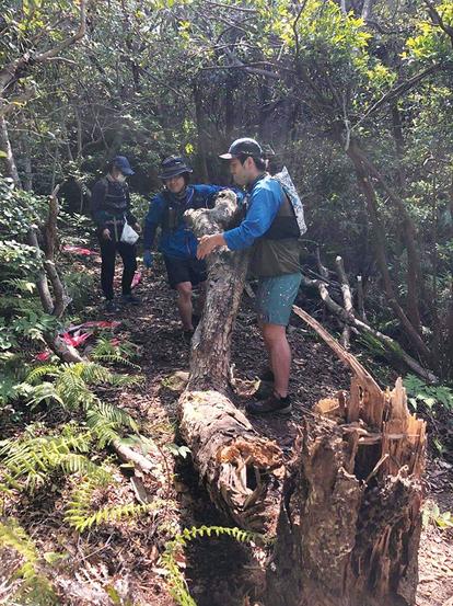 地域下松市山口県下松市笠戸島の山岳コースで22日(日)に開かれる「くだまつ笠戸島アイランドトレイル2022」(新周南新聞社など後援)に向けた準備作業が8日、同島で開かれた。主管の下松商工会議所青年部(河本寛之会長)の会員や一般ランナーなど計31人が、ランナーが道に迷わないために木などに目印をつけるマーキング作業や、倒木処理に取り組んだ。