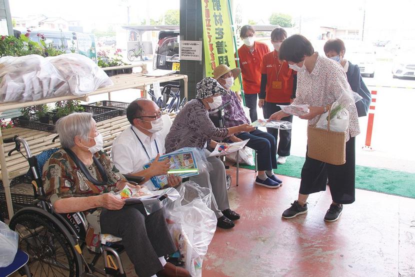 JA協同サポート山口が経営する山口県下松市河内の高齢者通所施設、JA小規模多機能おひさま下松(貞弘純子センター長、20人)の利用者が手づくりしたお守り120セ...
