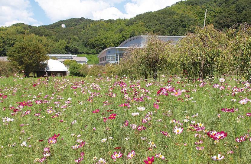 山口県下松市恋路の下松スポーツ公園の「花の広場」で、ピンク色のコスモスが咲き始めている。見ごろは10月中旬まで。 コスモスはキク科コスモス属の一年草で、草丈...