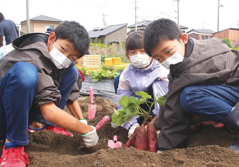 サツマイモを掘る子どもたち