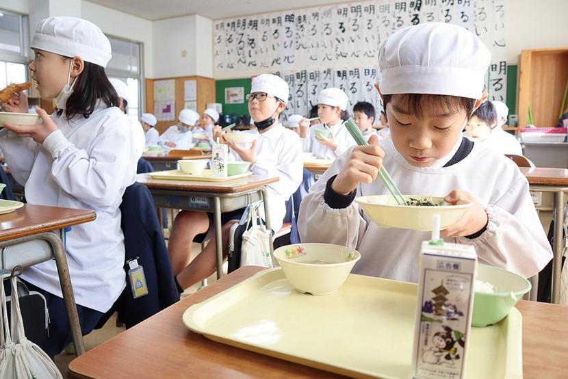 「下松給食」を味わう児童