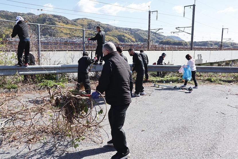 山口県下松市山田の道路舗装工事業、濱田工業㈱(濱田幸弘社長)など6社が8日、同市南花岡4丁目の国道2号上り線沿いの駐車場で清掃活動を実施し、参加した50人ほど...