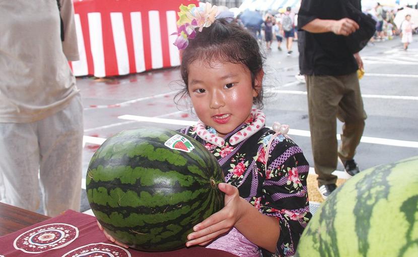 スイカを抱える竹村さん