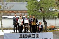 【周南】登録記念物の漢陽寺庭園 文化庁からの登録プレートお披露目
