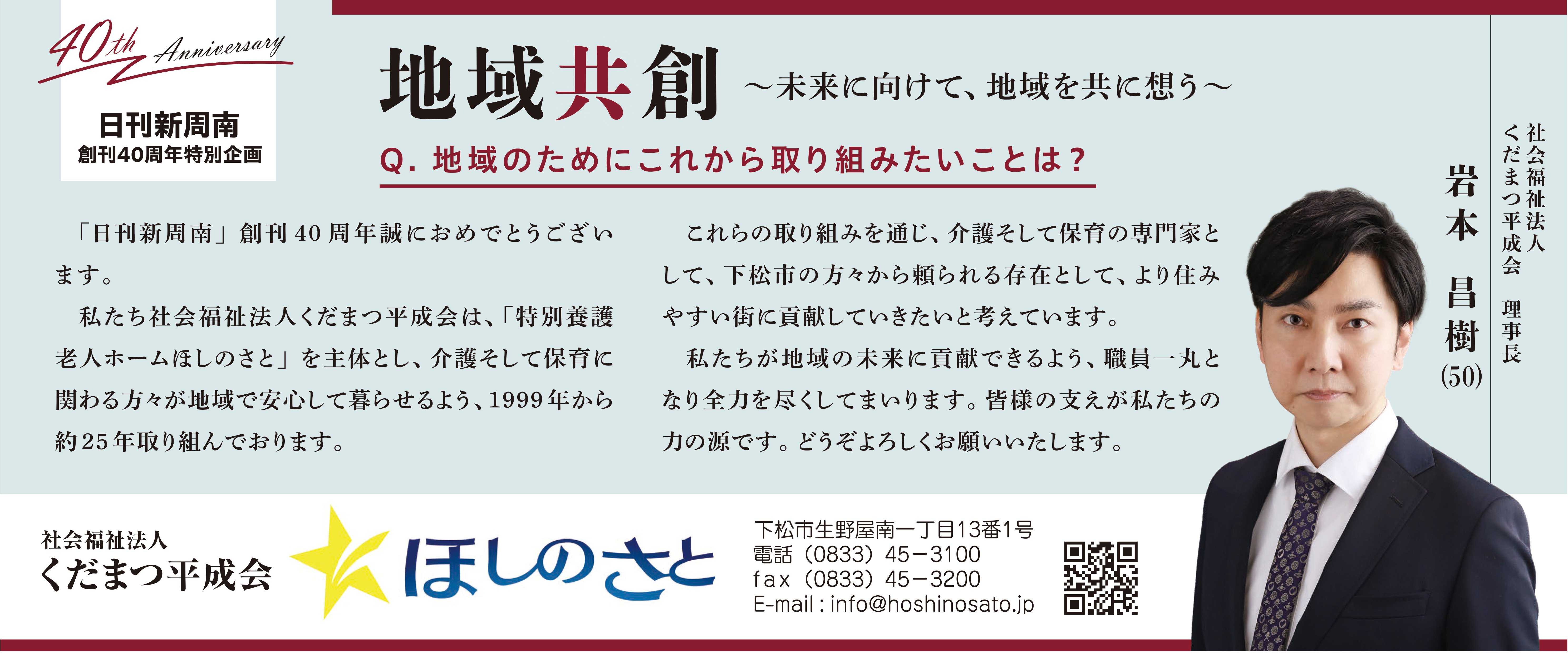 社会福祉法人くだまつ平成会理事長 岩本 昌樹さん(52)