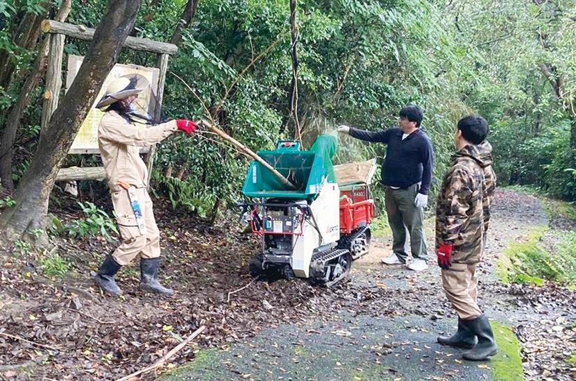 伐採した竹を粉砕するウッドチッパー