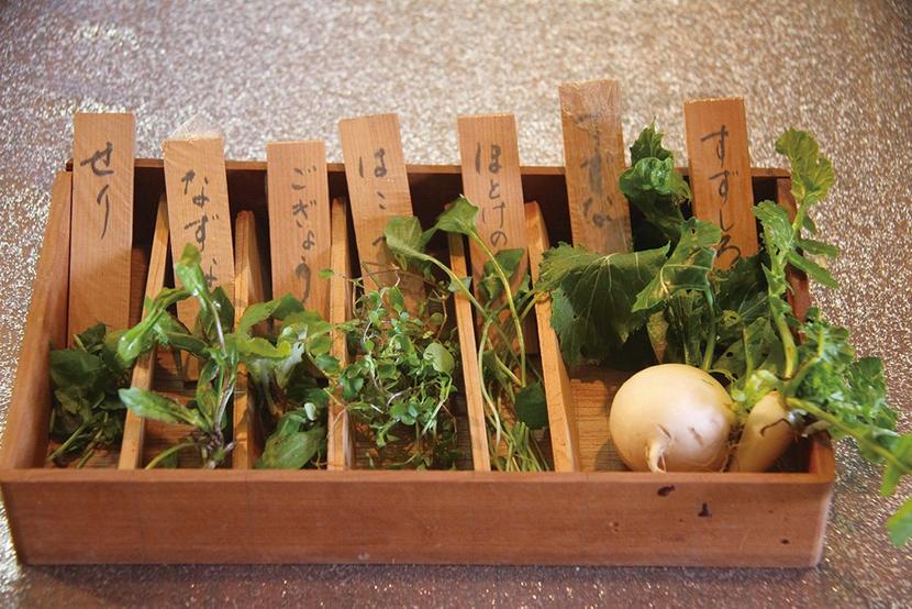 会場に展示された七草