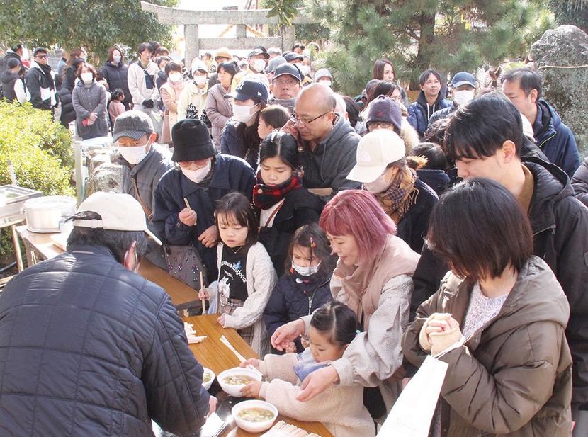 下松市北斗町の金輪神社(神足篤彦宮司)でどんど焼きが13日に開かれ、住民約450人が持ち寄った正月飾りなどを焼き上げて無病息災を祈った。 どんど焼きは北斗町...