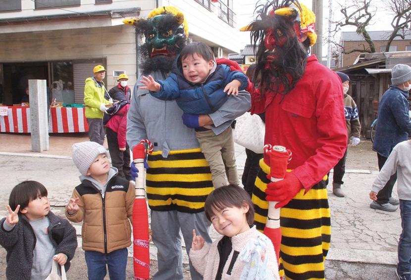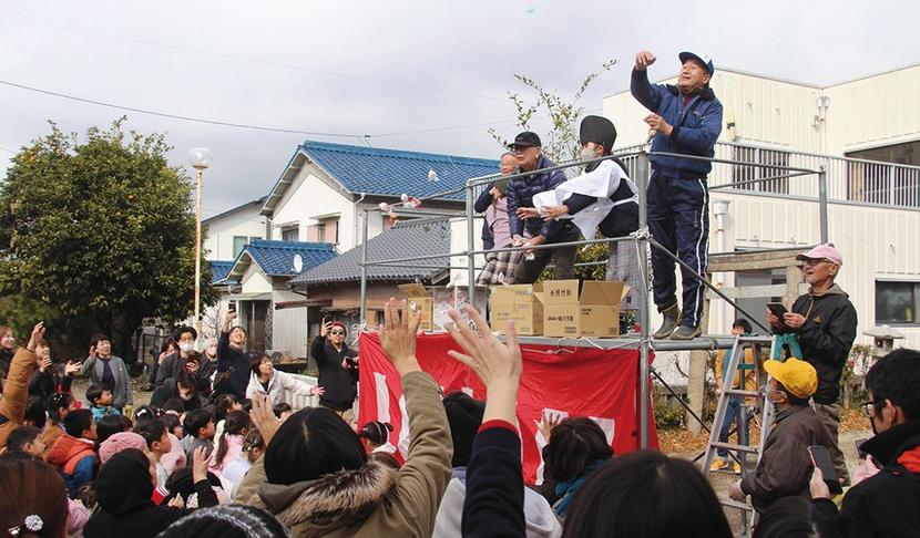 下松市中市1丁目の妙見宮鷲頭寺(みょうけんぐう・じゅとうじ)(杉原孝明住職)で2日、節分祭が開かれ、年男と年女による餅まきや、赤鬼と青鬼の街回りで節分を盛り上...