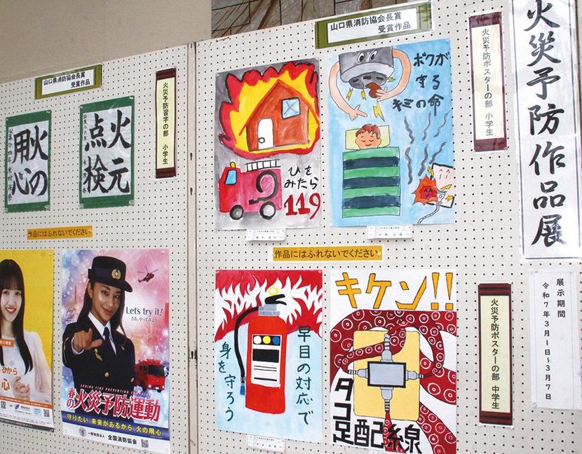 下松市防火委員会(会長・鬼武輝明市消防長)の火災予防作品展が1日からスターピアくだまつロビーで開かれ、ポスター▽習字▽絵画▽防火標語の入賞作61点が展示さてい...