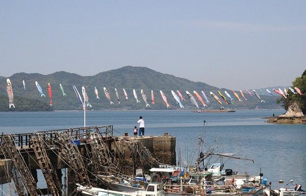 下松市笠戸島の小深浦(こふかうら)の入り江に、40匹のこいのぼりが岬と岬を結ぶロープに結ばれて、潮風に吹かれて泳いでいる。27日には地元住民6人と下松商工会議...