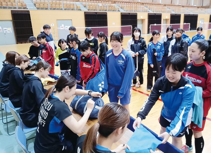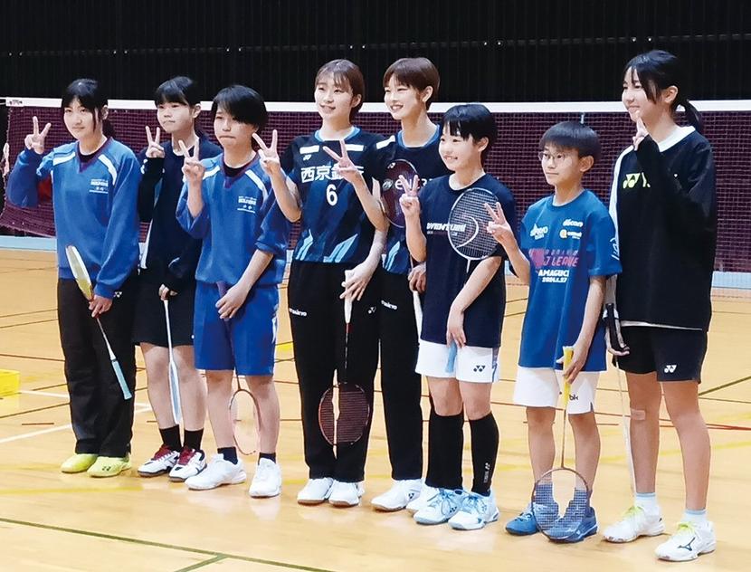 西京銀行の女子バドミントンチーム、ACT SAIKYO(大澤陽奈主将)の下松市中学生バドミントン教室が2日、下松スポーツ公園体育館で開かれ、末武中や久保中のバ...