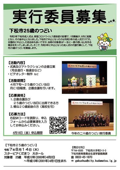 新型コロナウイルス感染症の影響で開けなかった2021年1月の成人式の代わりの行事を提供しようと、下松市教委は8月14日(木)午前10時30分からスターピアくだ...