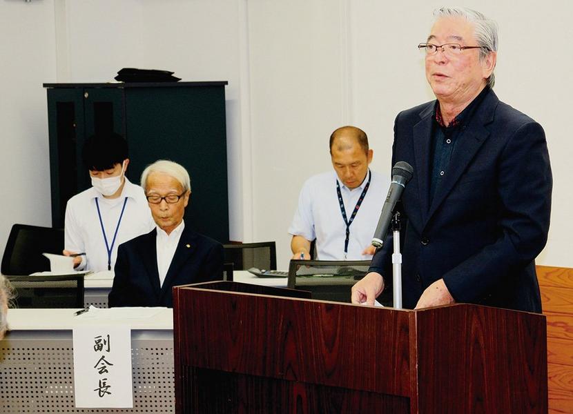 あいさつする中馬会長