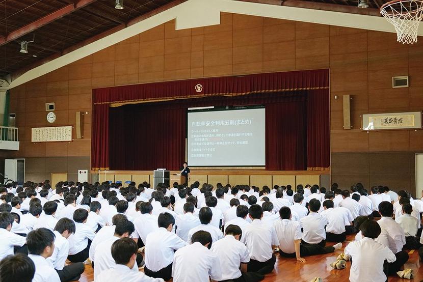 【下松】自転車の安全利用呼びかけ 下松自校・下松工高で交通教室