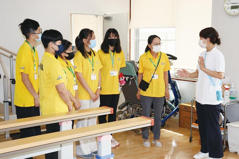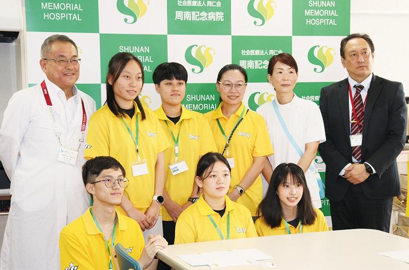 周南市の周南公立大と連携協定を締結している台湾・桃園市の台湾国立体育大の海外実習の学生5人が26日、下松市の周南記念病院(橋谷田博院長、250床)を訪問し、ス...