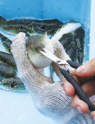 下松市笠戸島の市栽培漁業センター(荒川典子事務局長)で5月29日、試験養殖のトラフグの稚魚約4千匹の歯を切る“歯切り”があった。トラフグに歯があると互いにかみ...
