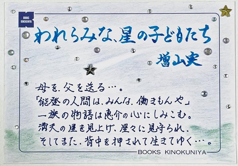 『われらみな、星の子どもたち』 作者名:増山実 出版社名:祥伝社 値段:1,980円(税込) 紀伊國屋書店ゆめタウン下松店下松市中央町21-3-3FTEL.08...