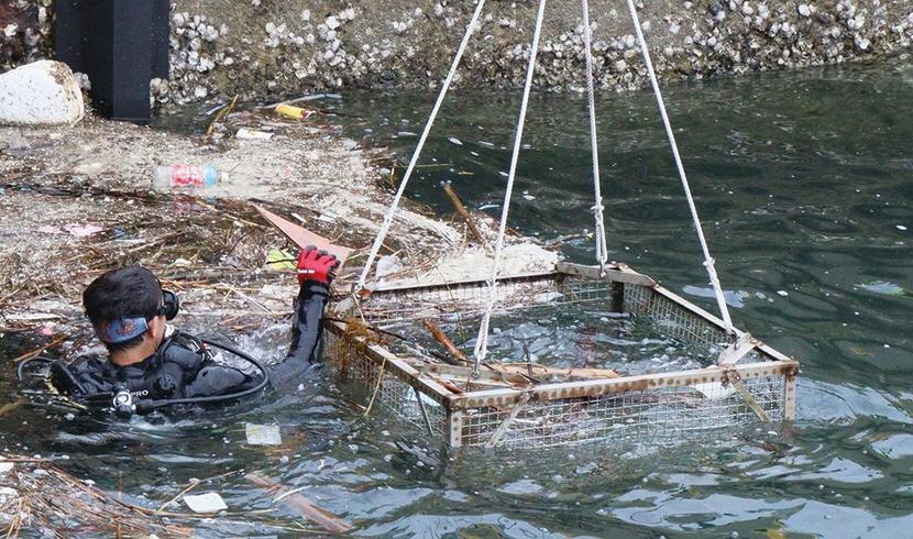 県釣り団体協議会(岡村晴義会長)の「岸壁・海底清掃活動」が13日、下松市新川の下松第1公共ふ頭で開かれ、ダイバー8人を含む約90人が海と岸壁を清掃した。 同...