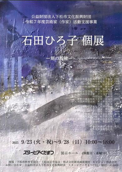 下松市の洋画家、石田ひろ子さんの個展「刻の旋律」(新周南新聞社など後援)が23日(火・祝)から28日(日)まで、スターピアくだまつ展示ホールで開かれる。 市...